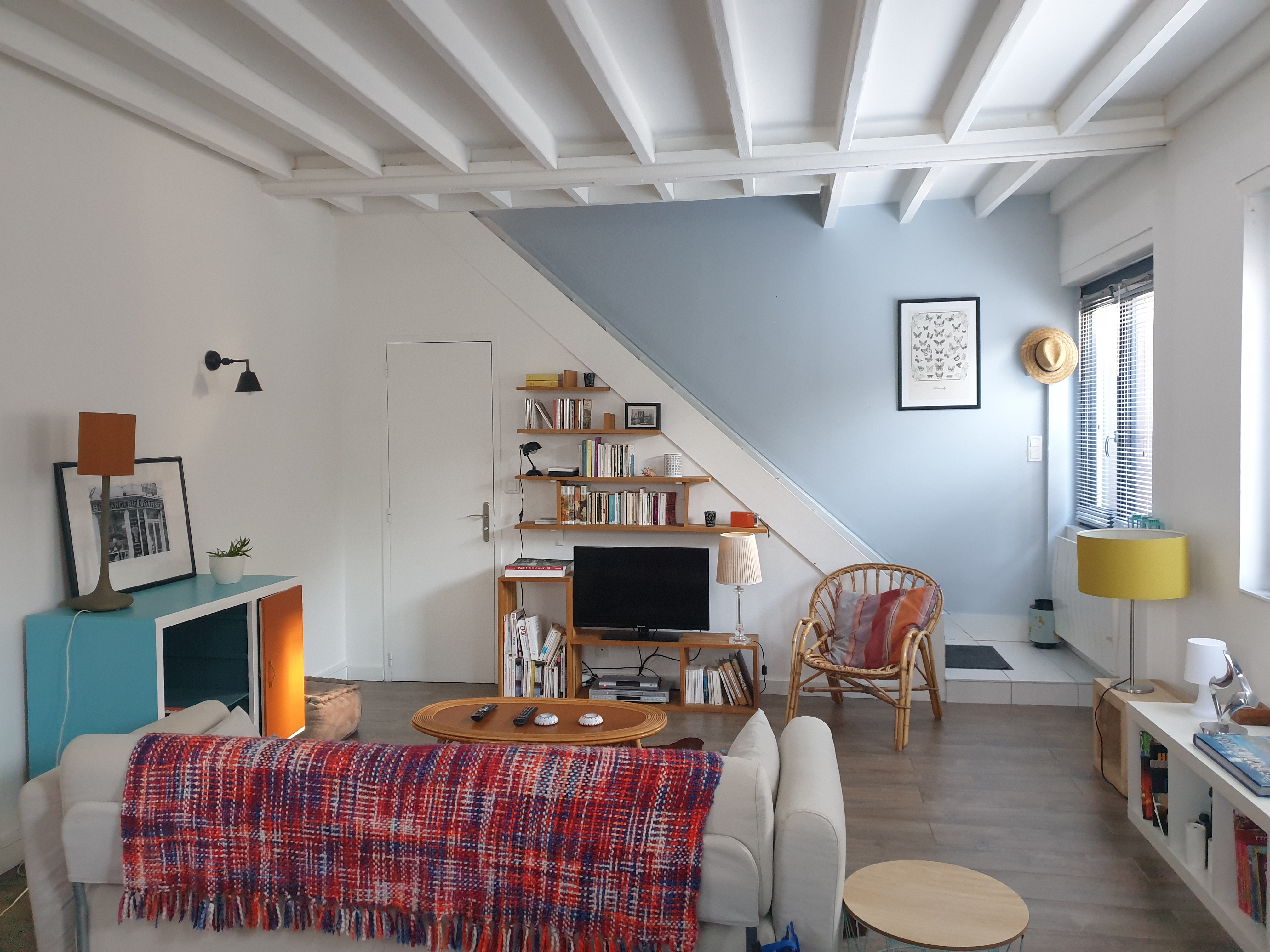 Le temps de stationner Audette (ma voiture pour celles et ceux qui ne le savent pas) et on pose nos valises dans la maison de ville de Ludivine. C’est tout mignon, des lumières partout, des livres, il y a même un étage, j’adore 😃