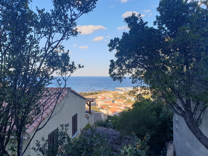 Le soir pour aller à la mer, je descends de ma colline à travers les virages. Mes kiffes de ce chemin ce sont la vue : la mer en toile de fond