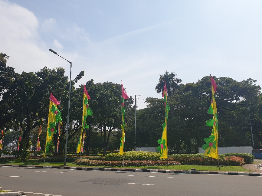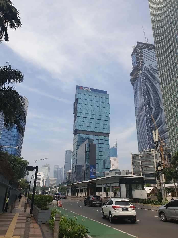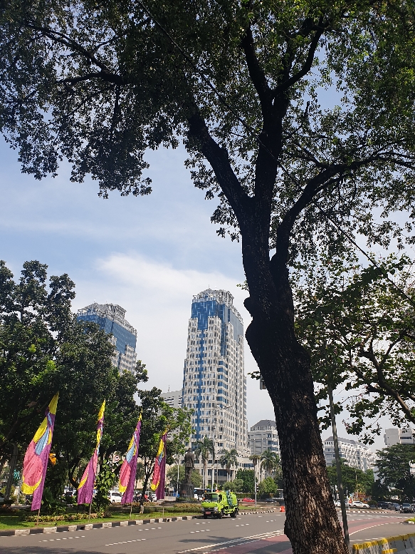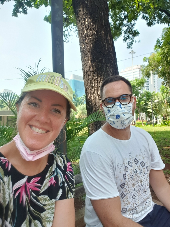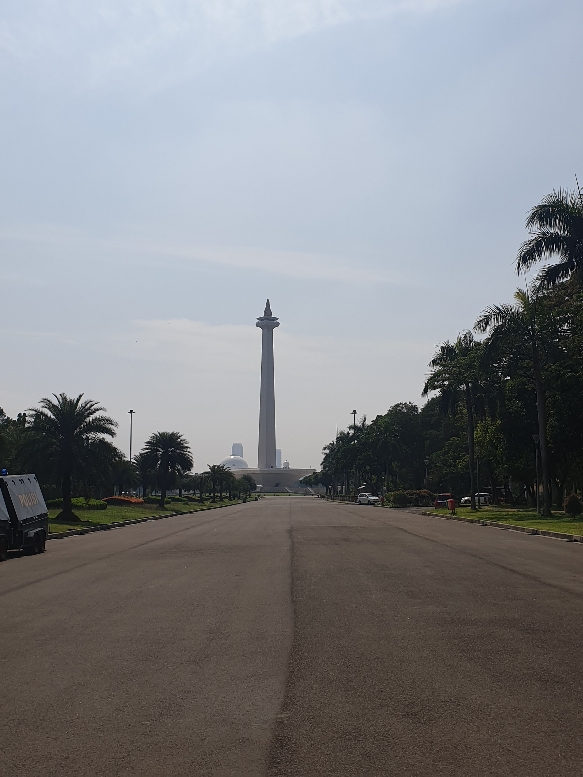 Samedi 12/06, on est libérés et on a qu’une seule envie : marcher ! C’est donc sans surprise qu’on s’empresse d’aller découvrir Jakarta. Notre plan c’est de faire ça ce matin et de squatter la piscine de notre nouvel hôtel cet aprem. J’ai répéré un parc avec le monument national, l’ami Google Maps indique 30 mn. On commence par prendre la grande avenue