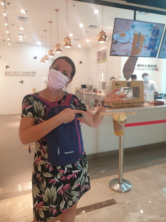 Il se fait presque faim, direction le shopping mall, enfin le monstre du shopping !!! Digne des centres commerciaux américains, on en profite pour flâner un peu, prendre un thé super bien emballé et déjeuner dans un restaurant japonais