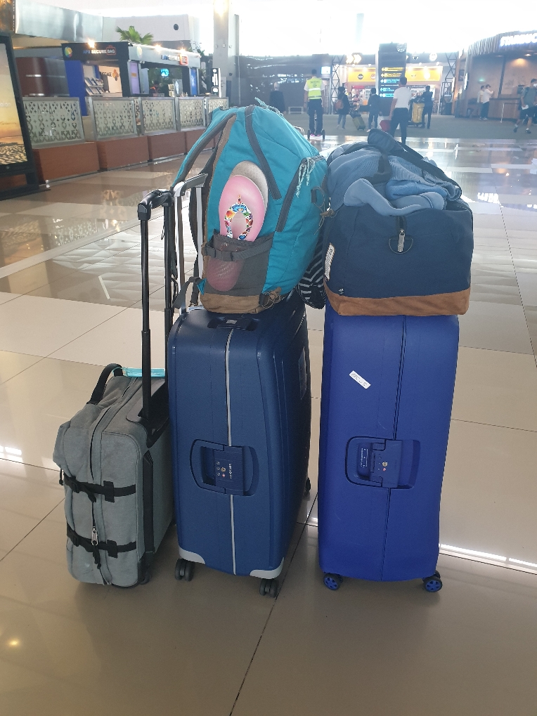 Alors, chargés comme on est, on décide de laisser nos gros bagages à l’aéroport dans une consigne et d’emmener le strict minimum avec nous.