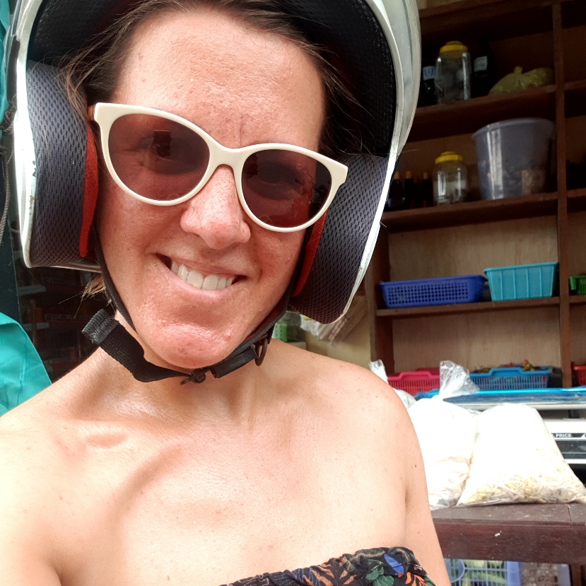 On loue des scooters à Nur pour aller repéré les lieux et se trouver un nid. Chacun le sien, c’est parti et on commence par le meilleur : la route toute cabossée ! Les réflexes reviennent vite : veiller à rouler à gauche, accélération, freins, c’esy parti