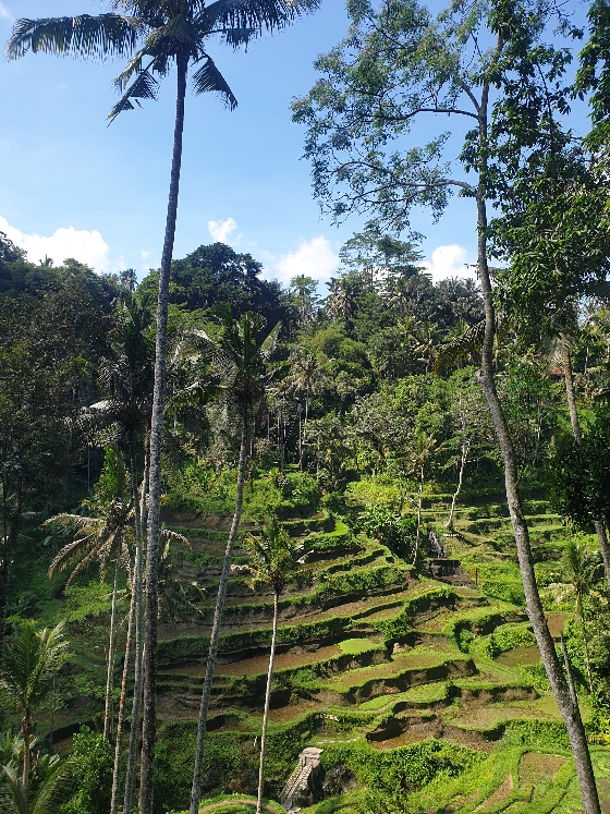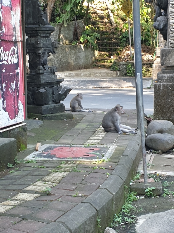 On reprend la route vers Ubud direction le raccourci de la forêt des singes. Je l’empruntains presque tous les jours pendant mon voyage il y a deux ans (non sans stress de me faire piquer quelque chose 🤪). C’est l’occasion de pouvoir voir des singes et de faire photos et vidéos que j’ai promises à ma nièce! On arrive, on emprunte le dit raccourci et euh ben on est seuls évidemment, les singes sont là mais je n’ose pas dégainer mon portable parce qu’il n’y a aucune autre attraction que nous. Donc règle de base : ne pas les regarder dans les yeux pour les provoquer (le primate est susceptible de l’oeil). A mi chemin je me rends compte que l’Homme aussi est tendu 🤔. Moi : ça va chéri ? Lui: humm j’aime pas trop les singes. Et à ce moment là, je me chope un fou rire en imaginant la scène qui vient de se dérouler 😂. On est tendus mais on y va !!