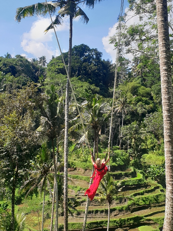 On arrive à Tegalalang. Ce lieu je le connais aussi. J’y suis venue quand je suis partie avec Copines de voyage il y a 3 ans. C’était LE spot Instagram par excellence. La toile de fond : les rizières, l’attraction : toutes les installations pour faire de la balançoire et swinger ainsi que les accessoires pour faire des photos. Aujourd’hui les rues sont vides, pas de queue pour accéder aux rizières. Nous sommes seuls et c’est juste génial de profiter du lieu de façon aussi calme.