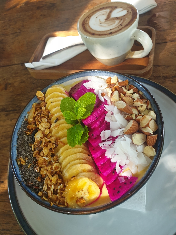 A Canggu, manger sainement, végétarien, vegan, normale… c’est la chose la plus facile. Il y a des cafés et des restos dans cette vibes à tous les coins de rues. Et c’est parfait!! Car j’ai envie de faire du bien à mon corps sans que ça devienne une usine à gaz. Alors, autant vous dire que les jus détox, les smoothies bowls et autres banana bread sans gluten ont été dégusté sans modération 😃 Je suis tellement en joie que j’envisage même de me lancer dans une semaine totale détox. Mon café préféré, le Healthy Tribes, se trouve du reste en dessous du co-working. Parfait pour une pause déjeuner ou goûter. C’est ici que je découvre la cure détox. Je prends le flyer. Ohhh, ils viennent même te livrer les jus chez toi!! Ça me semble de plus en plus tentant, je sens que je vais me lancer quand soudain, je lis la phrase suivante : il est mieux de rester chez vous quand vous faites la cure car ses effets sont soudain et imprévisibles. Une image de moi courant aux toilettes m’apparait à l’esprit et comme à ce moment là, on vit en co-living, je vais m’épargner ce type de représentation de moi-même !