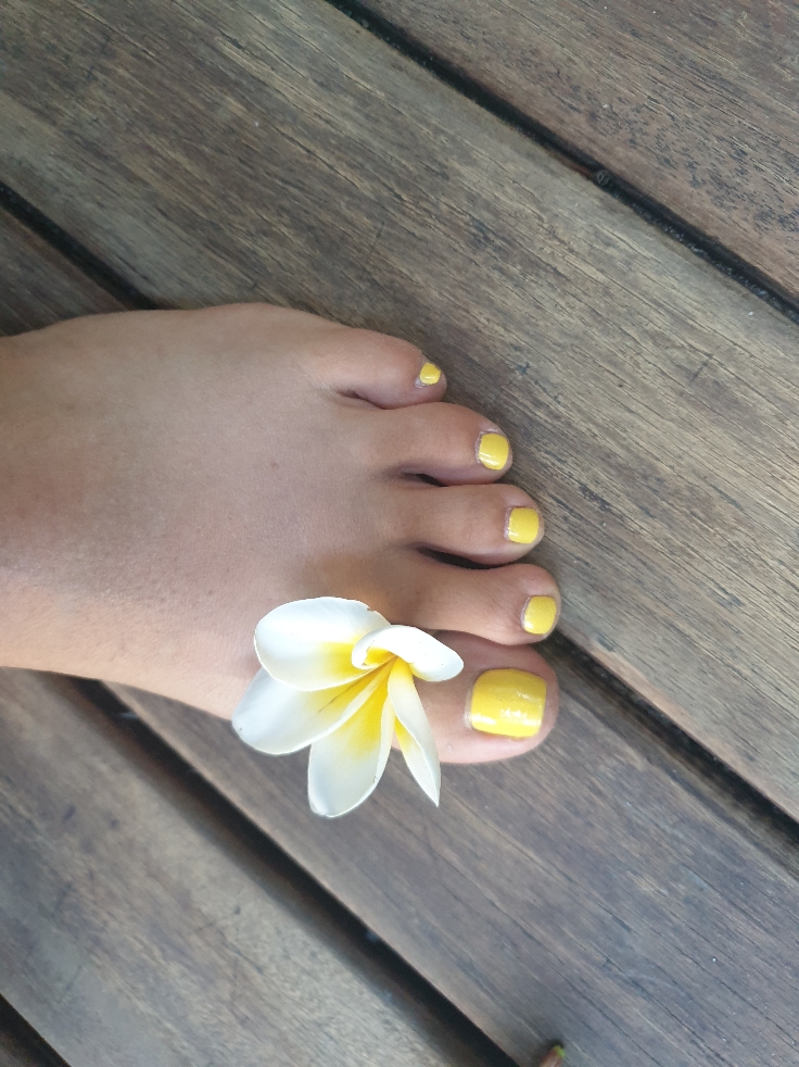En rentrant, je repère un salon de beauté ouvert ! Vite je me précipite me faire peindre les pieds. Là aussi, je n’ai rien d’autre à faire que prendre le temps. Ce temps qui semble s’être arrêté quand je regarde dehors….