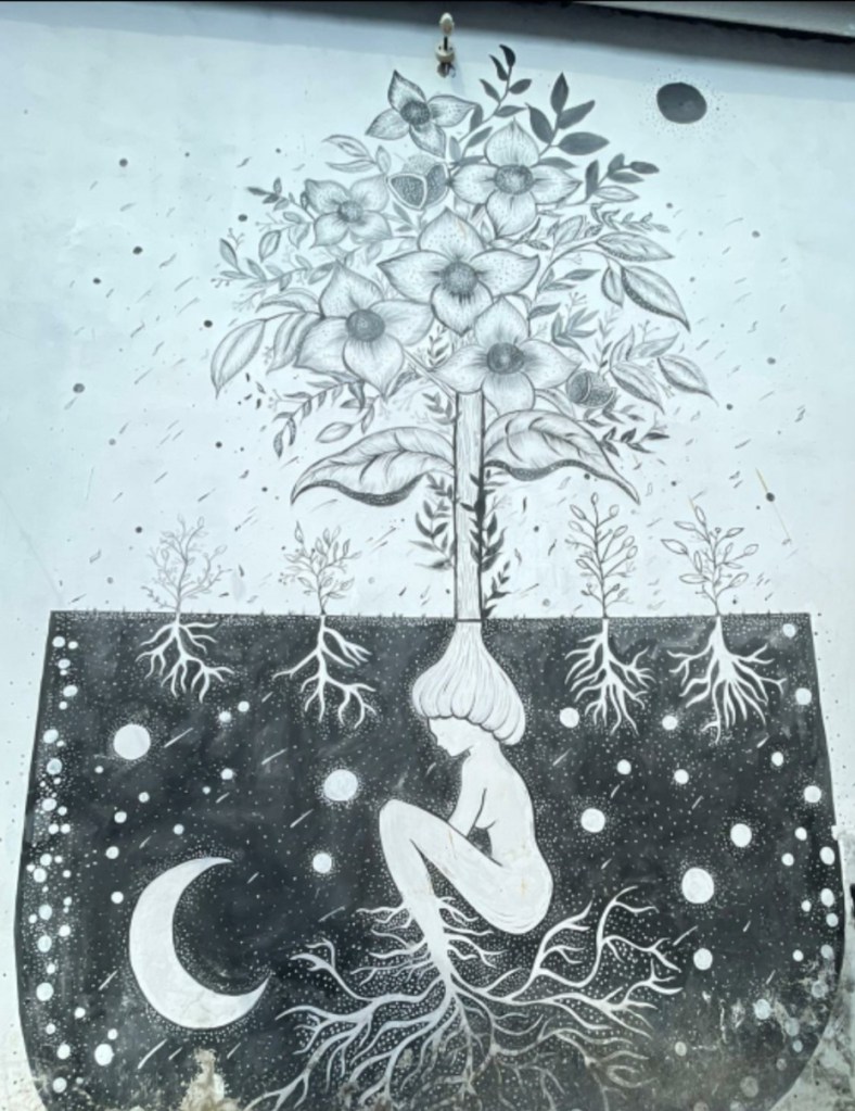 Il reste une semaine avant de changer d’endroit. On se concentre à faire le point sur les critères importants à prendre en compte pour le prochain logement, on prend le scooter, on va explorer des endroits plus loin, on visite des hôtels. On finit par en trouver un sympa et on décide de s’y poser pour 15 jours à partir de la semaine suivante. En attendant, je prends mon mal en patience. J’écris ce que je vis, je vais me ballader dans Canggu vide. Et je trouve même une petite gallerie marchande. Certes les magasins sont fermés. Mais je trouve un petit marchand de gauffres en forme de bulles. Allez, ça va me mettre du baume au coeur. Avec du crunchy chocolat en plus. Et bien cette gauffre aura le goût de la joie. Joie de me poser dans ce lieu coloré et de déguster cette petite merveille #petitsplaisirsgrandejoies.
