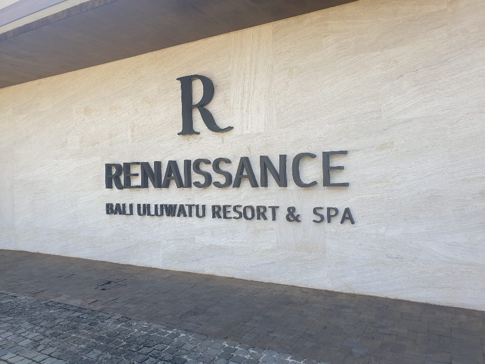 On part pour deux jours 🥳. Premier stop Uluwatu (qui se prononce Oulouwatou). Ça se situe au Sud Ouest de Bali et c’est une destination prisée des touristes avec ces plages au sable clair. Bon là les plages pour l’instant c’est fermé, on a donc réservé un bel hôtel : Le Renaissance. Rien que le nom me plaît !