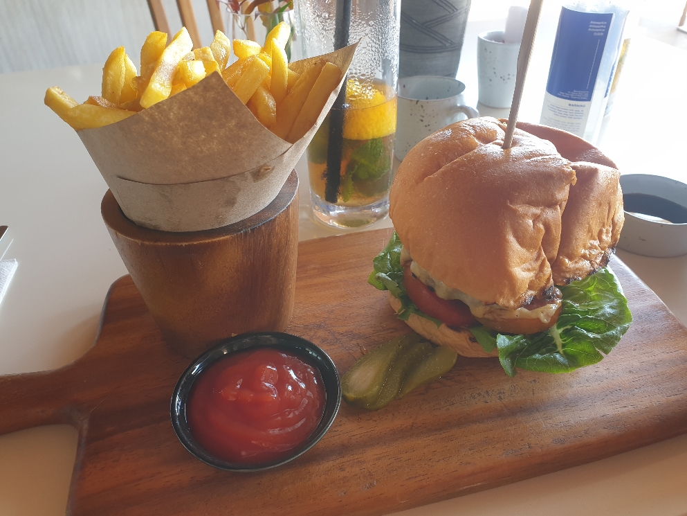 A peine le temps de poser nos valises, qu’il est déjà l’heure de déjeuner. J’adore la décoration et l’ambiance de cette partie de l’hôtel où se trouve le restaurant. Je me tape un bon burger et je dois dire que la qualité de la viande avoisine celle de notre ancien boucher. Hands up in the air 🤘