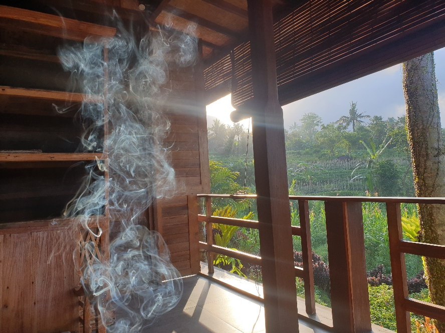 Sidemen se situe sur la côte Est de Bali dans les terres. Après une bonne heure de route, on arrive en cette fin de dimanche après-midi au Sawah Indah, notre hôtel. Changement total de décor. Ici, c’est la nature, le calme. Pas un bruit de scooter, de route. Rien, seulement les bruits de la nature. La température aussi est différente. Il fait plus frais. Je file faire un tour de l’hôtel avec ses chambres bungalows en demi cercle et devant ce spectacle de la nature qui me paraît presque irréel tellement c’est beau.