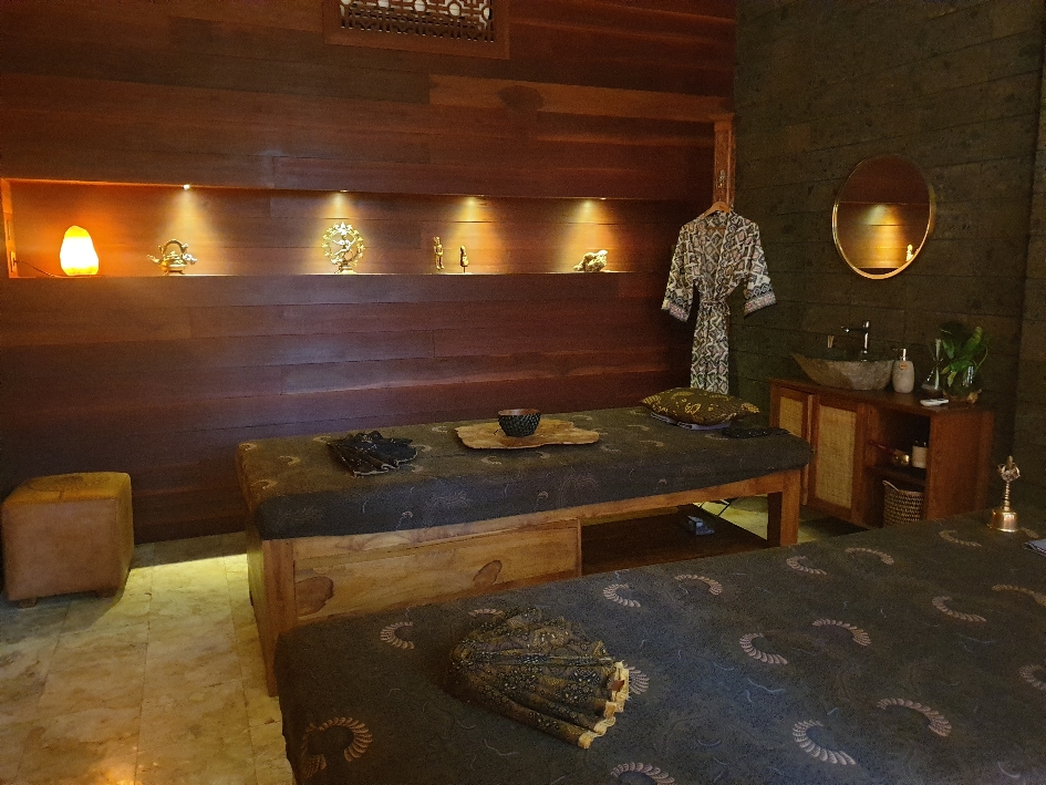 Ils viennent d’ouvrir un spa. Ah et bien je vais tester! Et plutôt deux fois qu’une est la bonne expression ! Massage balinais avec enveloppement au boreh sorte de masque aux épices de couleur orangée. C’est un soin traditionel. C’est donc ainsi badigeonnée comme une petite poulette avec sa moutarde que la détente et la douceur corporelle me gagnera !
