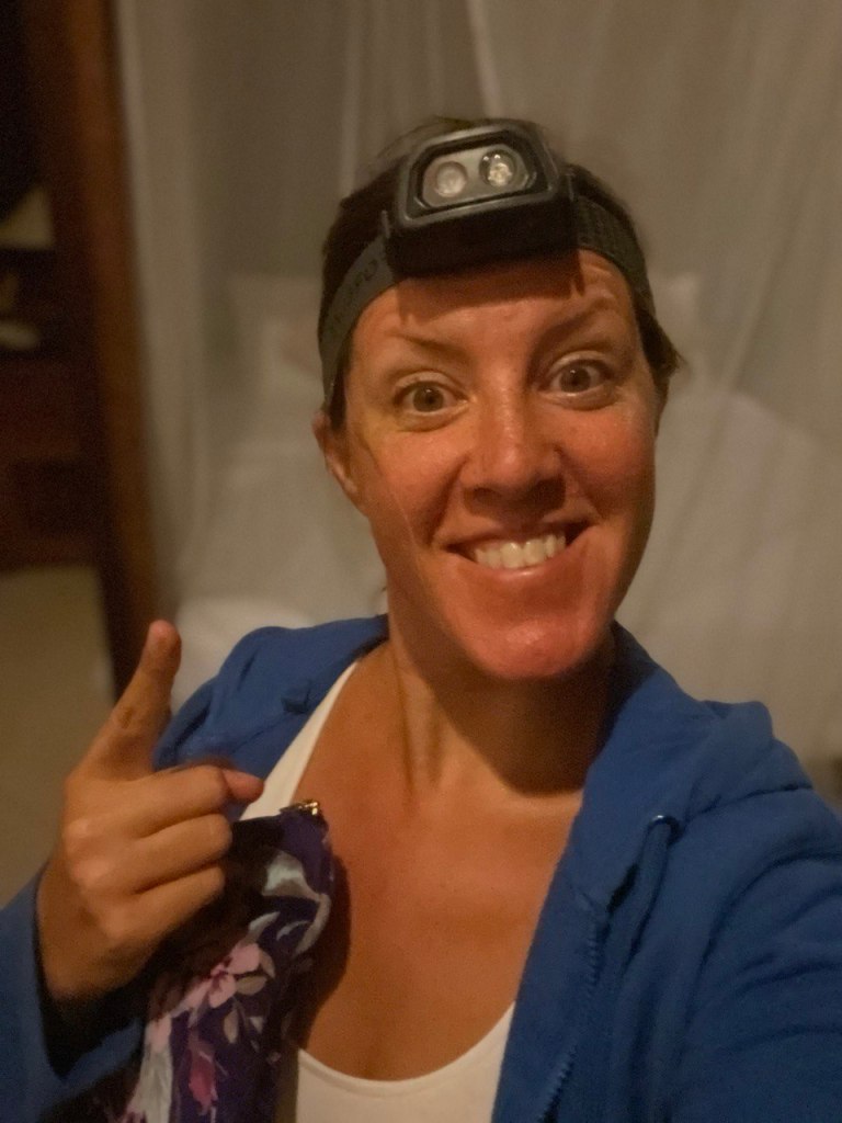 Et le soir, l’équipement indispensable c’est la frontale !! Pour se diriger certes et surtout pour faire attention aux crapauds, grenouilles et escargots pour qui la journée commence !